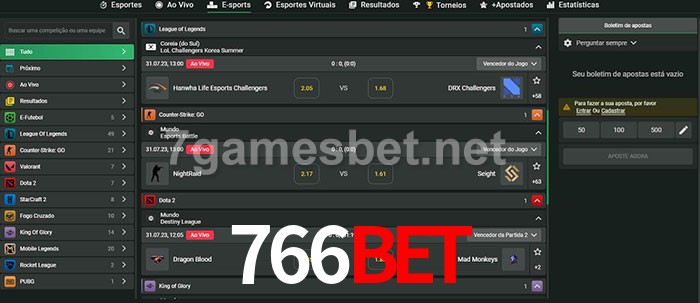 O 766bet oferece uma grande seleção de opções de apostas em e-sports com probabilidades competitivas